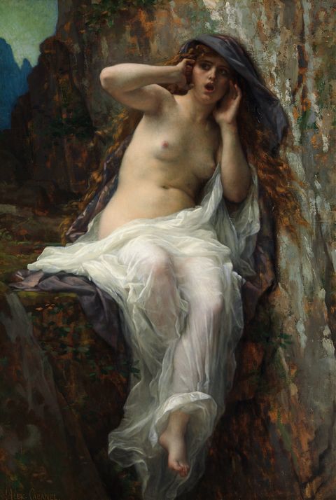 カバネルはこの物語を、物語性よりも感情の象徴として描いた。 エコーは岩場に佇み、風に髪をなびかせ、空を見上げる。