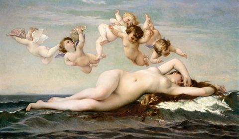 この絵画は、古代ローマ神話に登場する愛と美の女神ヴィーナス(アフロディーテ)の誕生を描いており、そのテーマは神話的美と官能の象徴として長く親しまれてきました。